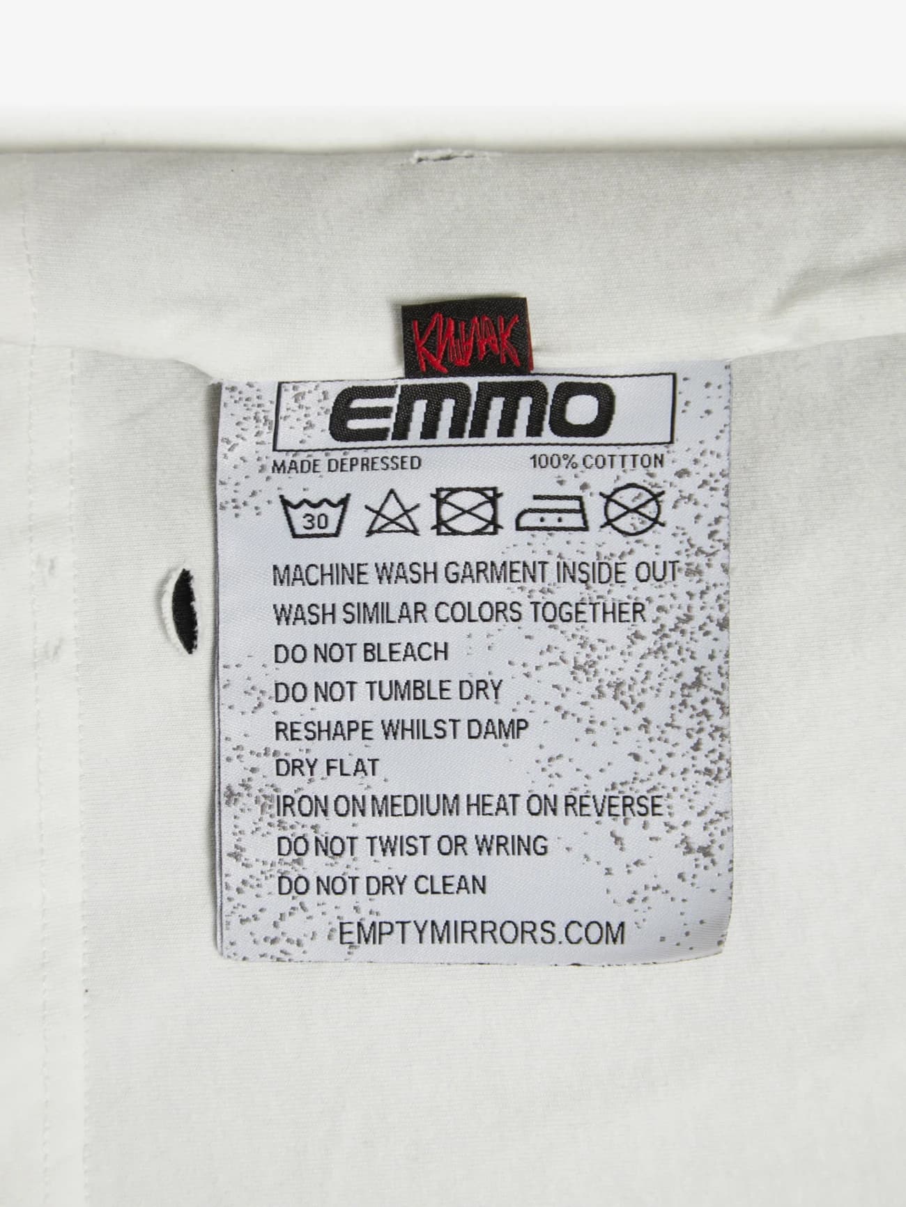 Коллаборация с FAÇON и КИШЛАК. Многослойное изделие их плотного хлопка. Черная сторона: принт шелкография, белая сторона: DTG. Присутствуют элементы дистресса и окраски спреем.